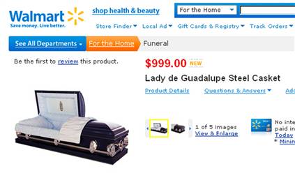 Wal-Mart now selling caskets, urns online
