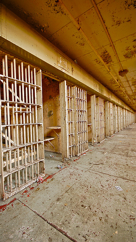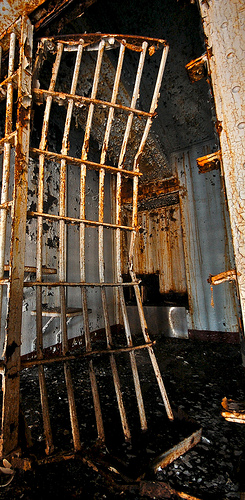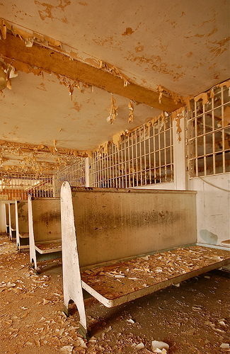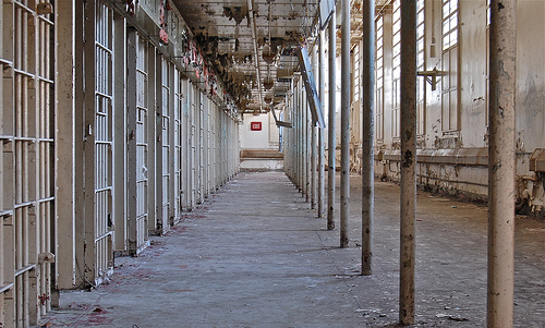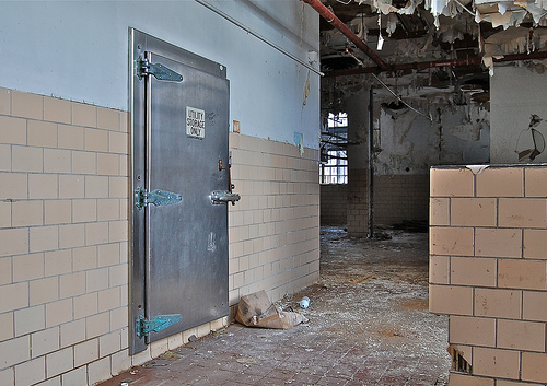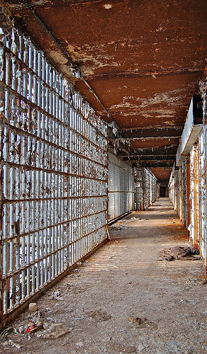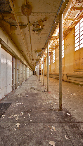 The next few trips we used this as our way into the main prison as they boarded up the prison well, but slacked on the wardens house. After time went on and the place got more popular, they either couldn't keep up with re-boarding up the prison or simply gave up. From this time on it was easy to enter and wander about the facility. Soon, it became a popular hang out for people and that's when the problems started. On several occasions we would run into kids throwing things off the roof or lighting papers on fire in the auditorium.