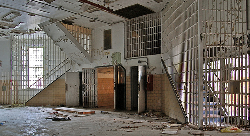 As is often the case with demolished buildings, nothing remains but pictures and memories. I took these photos a couple of years back, just a few months before the first machines tore through the historic brownstone structure. Today a stretch of manicured grass grows, highlighted by a cookie cutter condominium complex, concealing the penitentiary's once grande foot print. When I look out over the new housing development, I still imagine the curious castle of a jail as it used to sit, obscured behind tall fencing riddled with holes. I'll never forget the anticipation I felt the first time I walked up to the stone structure nor the nearly paralyzing rush of excitement that followed, after I found my way inside. At the time I had no idea of just what a gem of a playground I had wandered into. The following years brought with them many return trips laced with fun and good people.