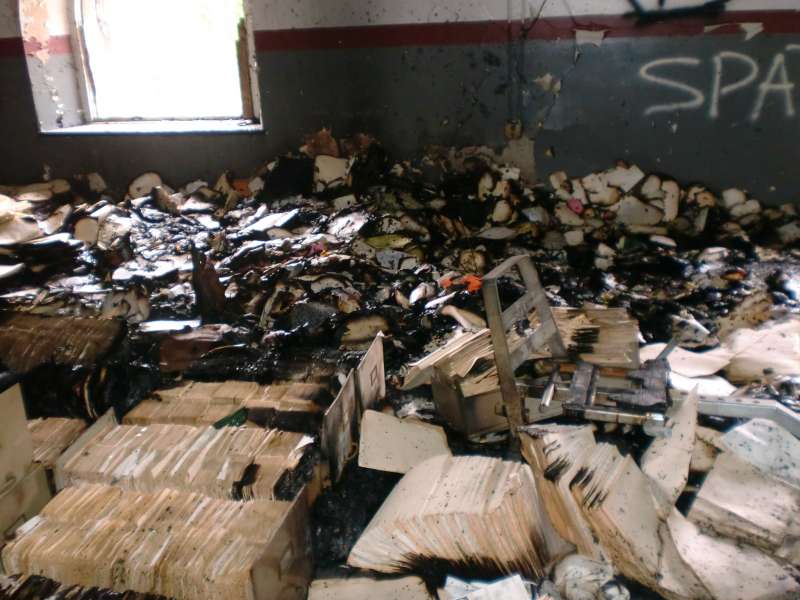However, firefighters had to force their way into that portion of the building where the fire was contained to a recreational room where piles of old records were set on fire, D'Ascensio said.