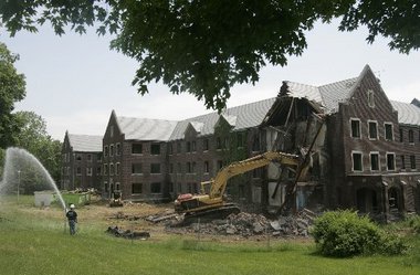 Workers demolish the employees' residence building on Morris County's portion of the the Greystone Park Psychiatric Hospital campus in this file photo.