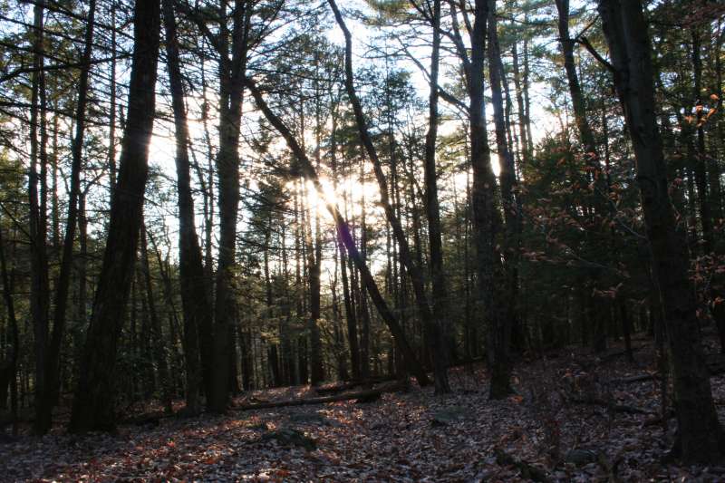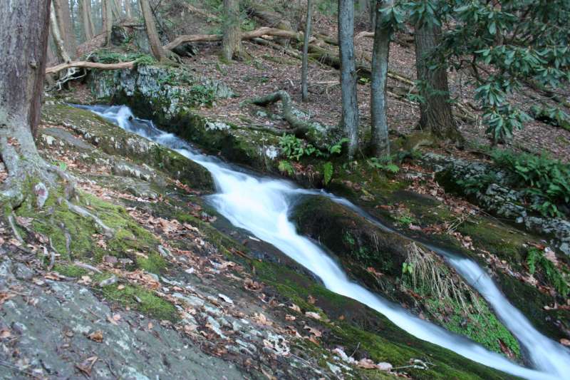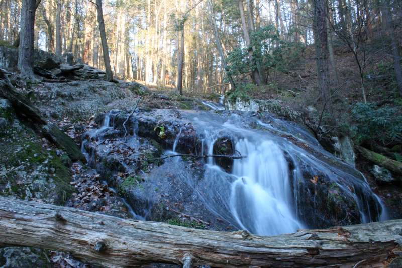 Here, also, are a picnic area and plenty of trails to follow. Tillman Brook starts on the western slope of Kittatinny Ridge and flows down to the Flatbrook. The water flows across High Falls formation of green and red sandstone which create the ravine. The trails follow the stream down steep slopes blanketed with hemlocks and moss covered rocks. A long series of falls and cascades create a wild and scenic view. Many people visit the ravine in summer since it remains cooler here under the hemlocks than other areas of the forest. Early spring is also a great time to visit. You may have the entire place to yourself.