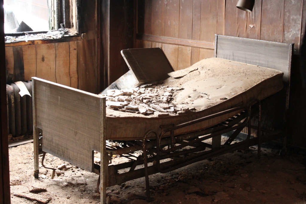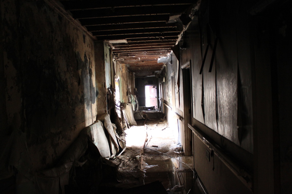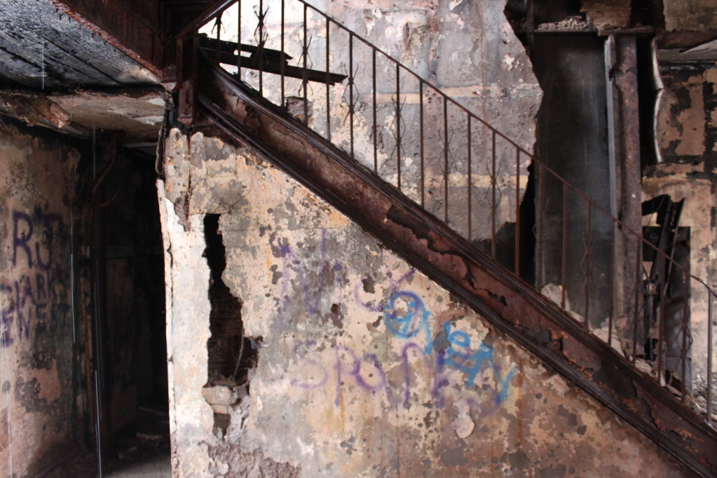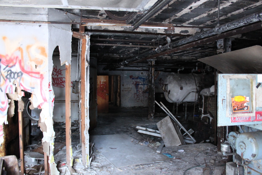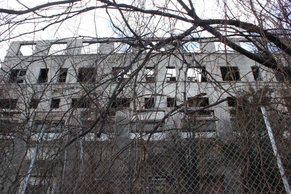 A series of wrong turns and a rapidly dipping gas gauge diverted us from our original objective and landed us here. We couldnt even get past the second floor, after seeing all the collapses, weak stairs, and being that i had read about the man at byberry that died after falling through the stairs. This was a big exploration for us, when we first started this hobby. It always held such mistique, now its shot. Always hate to see your friends slowly dying....