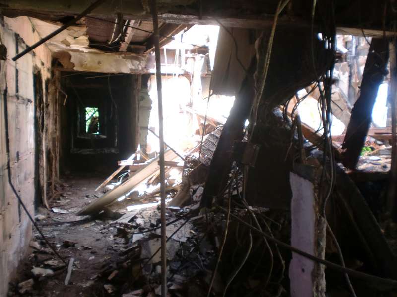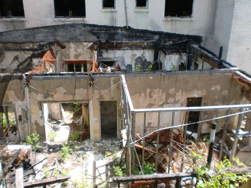 Significantly worse condition since our last trip, over 1 year ago. More graffiti, beds flipped over, and a collapsed floor down 4 floors. With the stairs so covered in ash and asbestos, it was like walking down a slanted ramp. After seeing the downfall of the place, we are now just waiting for the rest of it to come down...