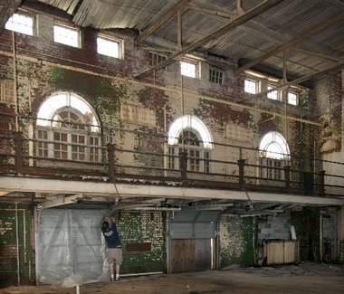 A worker from Tricon Enterprises Incorporated begins to seal a building at Skillman Village in preparation for asbestos removal prior to demolition in this July file photo.