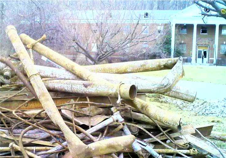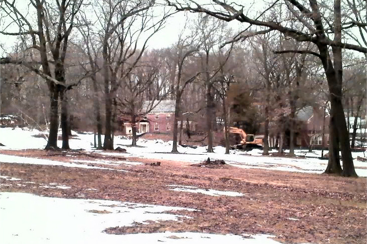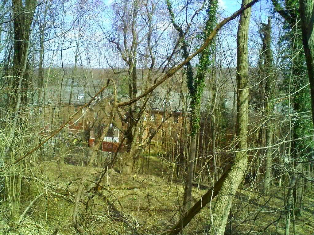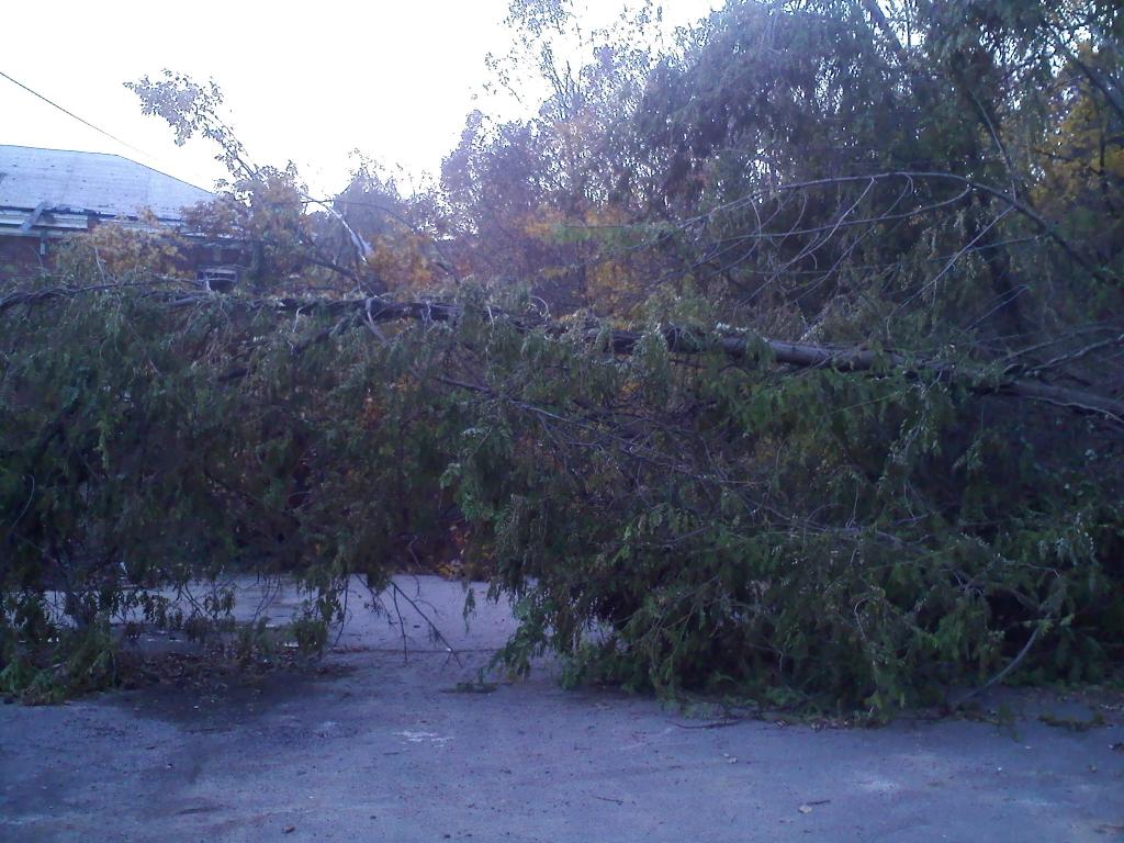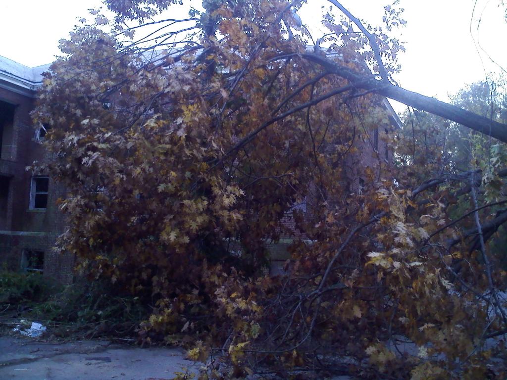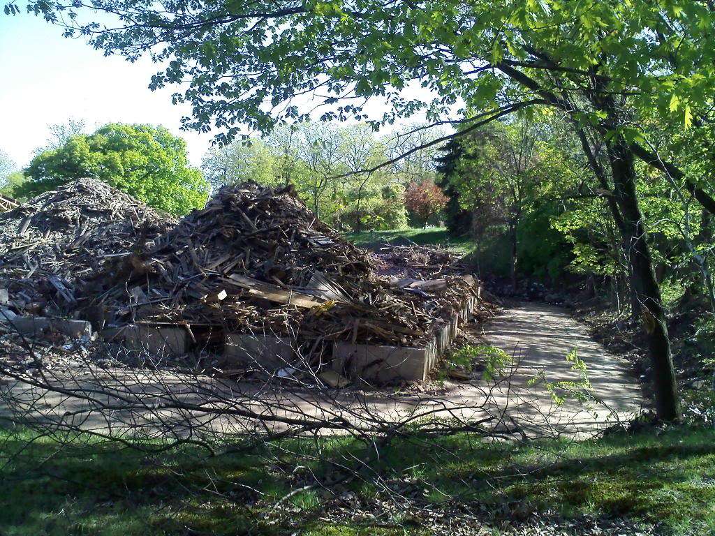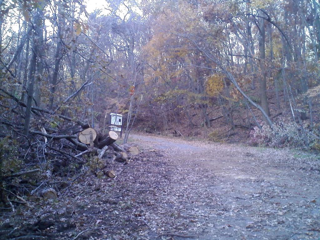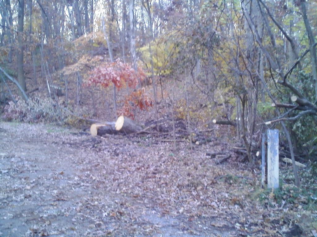There were downed trees at the entrance to the Hilltop that were cut up